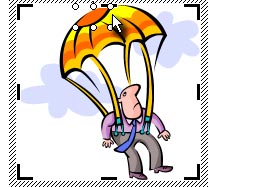 Barva polnila nam potrdi pravilnost izbire dela izrezka (če bi bila črna, smo verjetno izbrali črno črto pod oranžnim vrhom padala, ki pa ji tudi lahko zamenjamo barvo ali pa jo zbrišemo s tipko delete). Jaz sem izbrala zeleno barvo. |