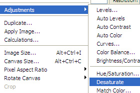 ![]() Kliknite zgoraj Image, Adjustments, Desaturate (Shift+Ctrl+U). Fotografija se vam spremeni v črno belo. |