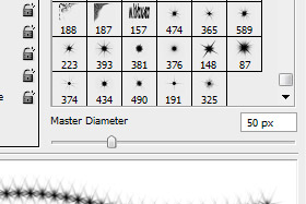 Kliknite tukaj, da prenesete brush set z zvezdicami. Ko to naredite, pojdite na Brush Tool in izberite brush z velikostjo 365 in ga minimirajte na 50 (glej sliko)... |