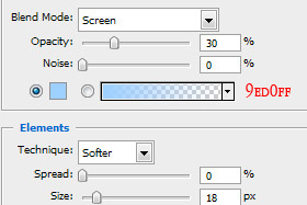 ...ustvarite nov Layer, nastavite Foreground na #f4faff, in kliknite enkrat z brush tool-om na zgornji konec prve črke (v mojem primeru je to črka B) da naredite zvezdico.