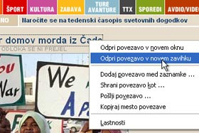 Sedaj pa na nek naslov (povezavo) kliknite z desnim miškinim gumbom in izberite Odpri povezavo v novem zavihku.