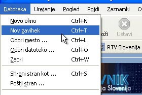 Sedaj imate odprto samo eno stran, brez zavihkov. Kliknite na Datoteka in izberite Nov zavihek (bližnjica sta tipki Ctrl + T).