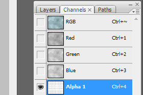 Zdaj pa spet kliknite na Channels panel, držite tipko Ctrl in