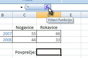 ![]() Kliknite na ikono, ki predstavlja vstavljanje funkcije (glej sliko). |