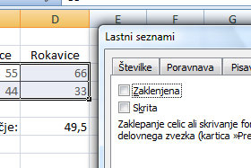 ![]() Sedaj bomo določili še celice, katere ne želimo imeti zaklenjene. |
