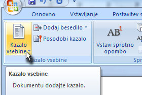 ![]() Nato pa kliknite na ikono Kazalo vsebine. |