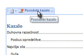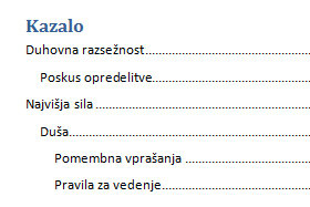 ![]() Sedaj bomo ustvarili kazalo, ki bo sestavljeno iz naslovov in poglavij, ki ste jih določili. |