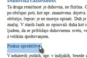 ![]() Označite sedaj neki drugi naslov oziroma poglavje, ki bo služilo kot podnaslov. |