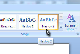 ![]() In mu nato v oknu Slogi določite tokrat slog imenovan Naslov 2. |