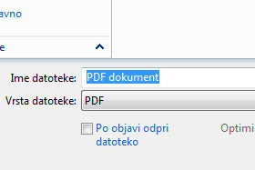 V novem oknu določite mapo, kjer boste dokument shranili in nato v polje Ime datoteke vpišite poljubno ime in spodaj Vrsta datoteke pustite označeno PDF.