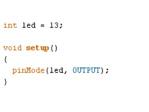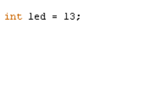 ![]() Začnemo z: int = <št.pina>; V mojem primeru: int LED = 13; S tem podatkom krmilniku povemo, na katerem "pinu" je povezana določena stvar, v našem primeru LED dioda. |