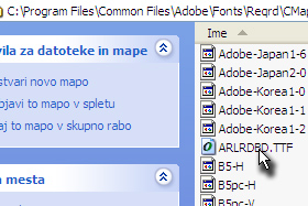 Nato gremo: c:/Program Files/Common Files/Adobe/Fonts kamor premaknemo datoteko, ki smo jo naložili.