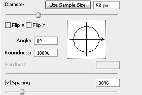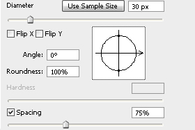 Pritisnite na Brush Tip Shape in nastavite na nekaj takega, kot kaže slika. |