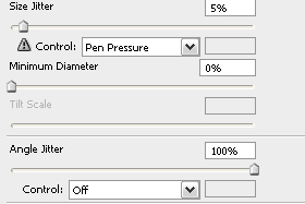 Označite zopet Shape Dynamics in nastavite tako, kot je na sliki.