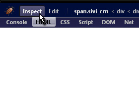 Tako lahko direktno v brskalniku kar vam ni všeč spremenite in takoj vidite rezultat. Firebug pa ima še eno dobro funkcijo. Imenuje se Inspect. Kliknite, da vklopite to možnost. |