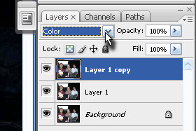 Pritisnite tipki CTRL + J, da duplicirate dupliciran layer in mu določite senčenje na Color (glej sliko).