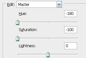 Pritisnite tipki CTRL + U in v novem oknu Hue nastavite na -180 in Saturation -100.