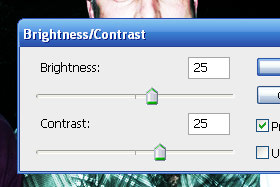Potrdite na gumb OK, ko vas vpraša za ime nastavitvenega layerja. Potem pa določite Brightness in Contrast na 25 in potrdite na gumb OK. |