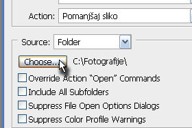 ![]() Potem Source določite Folder, kliknite na gumb Choose... ter določite mapo, kjer se nahjajo fotografije, ki jih boste pomanjšali. |
