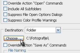 ![]() Pri polju Destintation tudi določite Folder in nato kliknite na gumb Choose... ter določite mapo, kjer želite na novo pomanjšane fotografije shraniti. |