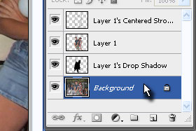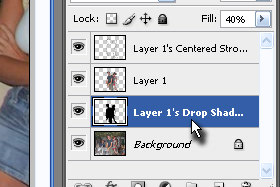 Označite sedaj layer, ki prestavlja senco (Drop Shadow efekt). |