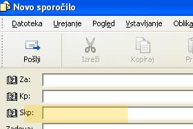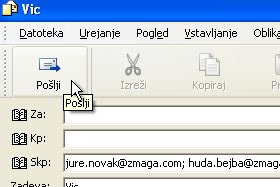 V novo polje Skp: vnesite sedaj e-poštne naslove, katere ločuje podpičje(;) in napišite spodaj še sporočilo.
