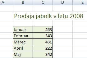 Ustvarite tabelo z podatki, katere boste uporabili v grafikonu.