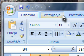 Kliknite na zavihek Vstavljanje.