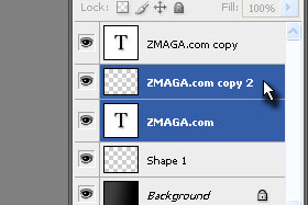 Držite tipko CTRL in označite sedaj prvi in dupliciran tekstovni layer.