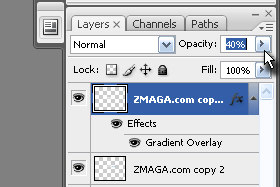 Temu layerju, k iste mu dodali efekt preliva, znižajte Opacity na približno 40% (glej sliko).