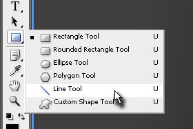 Držite z miško na orodju Rectangle Tool (bližnjica je tipka U) toliko časa, dokler se ne prikažejo ostala orodja. |