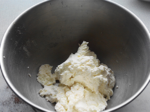 V posodo damo 500g skute. Jaz sem uporabil nepasirano.