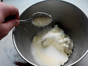 Skuti dodamo polovico skodelice sladkorja.