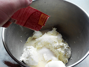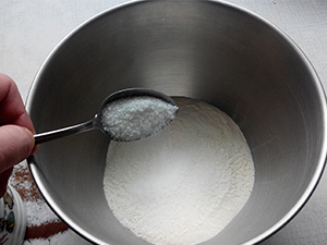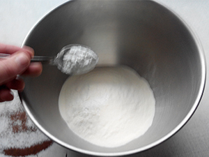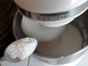 V moko vmešamo 1 žličko pecilnega praška.