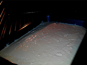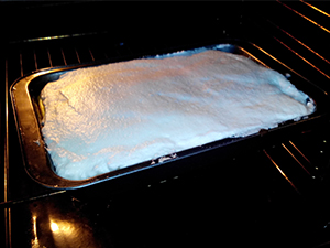 Pekač vrnemo v pečico in pečemo še 10 - 15 minut, odvisno od vaše pečice.Najboljše je, da spremljate dogajanje. Manj bo zapečen sneg, bolj bodo kasneje vidne solzice.