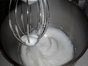 Nato pa snegu postopoma dodamo 5 žlic sladkorja v prahu.