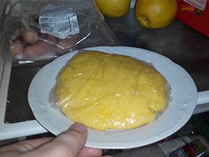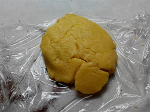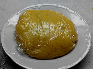 Oblikujemo v mali hlebček in ga položimo na folijo za zavijanje živil.