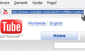 Sedaj pa označite celoten spletni naslov, kot je prikazano na sliki.
