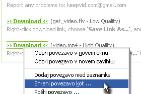 V vseh primerih bomo vedno raje izbrali možnost High Quality. Kliknite z desnim miškinim gumbom na povezavo >> Download << in izberite Shrani povezavi kot ... |