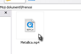 V novem oknu z raziskovalcem v polje Ime datoteke vpišite želeno ime in dodajte končnico .mp4 (glej sliko) ter potrdite na gumb Shrani.