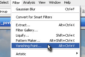 ![]() Kliknite zgoraj na Filter in izberite Vanishing Point...