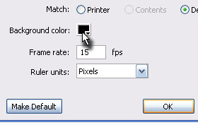 Pritisnite tipki CTRL + J in v novem oknu nastavite črno barvo kot background color ter Frame rate nastavite na 15 fps.
