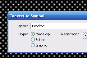 Potem pa pritisnite tipko F8 in Type označite Movie clip ter potrdite na gumb OK. V polje Name vpišite poljubno ime. |