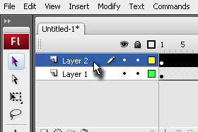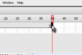 Kliknite sedaj na Frame 40 novega layerja in pritisnite tipko F6.