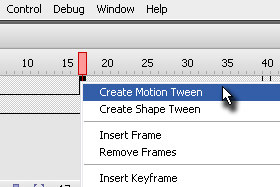Kliknite z desnim miškinim gumbom nekje med Frame 1 in Frame 40 zgornjega layerja ter izberite Create Motion Tween.