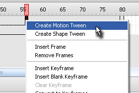 Kliknite z desnim miškinim gumbom nekje med Frame 42 in Frame 80 zgornjega layerja ter izberite Create Motion Tween.