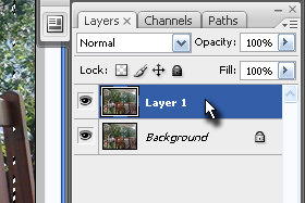Kliknite sedaj na zavihek Layers in kliknite na duplcirani layer (glej sliko).