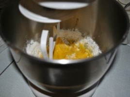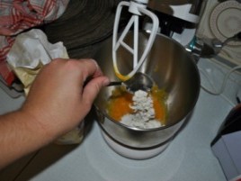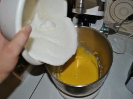 Sneg dobro vmešamo, da dobimo končno maso za biskvit. |