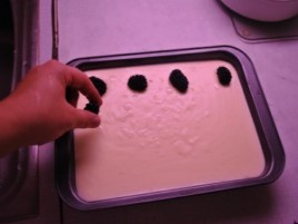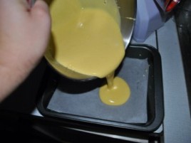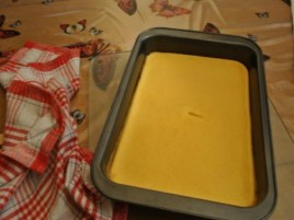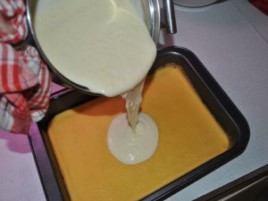 Vročo zmes še prelijemo čez ohlajeni biskvit. |