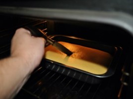 Po 15 minutah preverimo z nožem, če je biskvit pečen. |